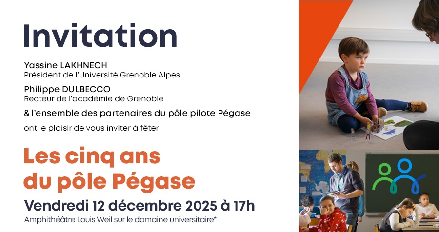 Le pôle Pégase a pour ambition de transformer les pratiques enseignantes de la maternelle au lycée pour renforcer l’apprentissage des savoirs fondamentaux (langage oral et écrit, mathématiques/informatique, respect d’autrui) et contribuer ainsi à réduire les inégalités sociales, territoriales et cognitives. Le Pôle a été conçu comme un écosystème associant étroitement les laboratoires de l’UGA et de l’USMB, les INSPE et Rectorats de Grenoble et de Guyane, et l’ensemble de la communauté enseignante. Cet écosystème est collaboratif, distribué, ouvert et apprenant. Il travaille à placer l’approche « evidence-based education » (éducation fondée sur les données probantes) au cœur de la formation initiale et continue des enseignants, pour favoriser leur développement professionnel en s’appuyant sur des données issues de la recherche.